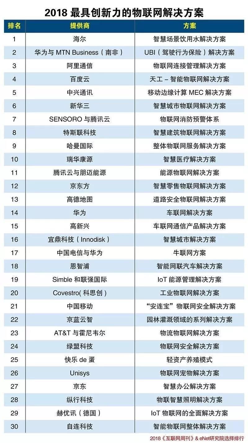 近日,由《互联网周刊》和eNeT 研究院联合评选了2018最具创新力的物联网解决方案。瑞华康源榜上有名, 位列第10,是排行榜上唯一一家医疗行业上榜企业。