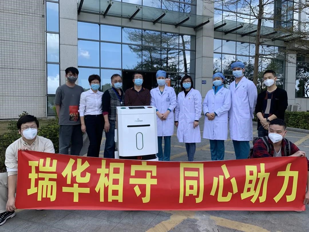 除了一线的白衣天使战士们之外还有太多太多的无名英雄在这场战役中默默努力着付出着,在病魔面前我们每个人不再只是一个平凡的人,而是一个战士, 每个企业也不单是一家公司,而是一份责任和担当。而这其中还有瑞华的机器人“战士”也第一时间冲上战场,执行保障一线物资运输及管理任务。