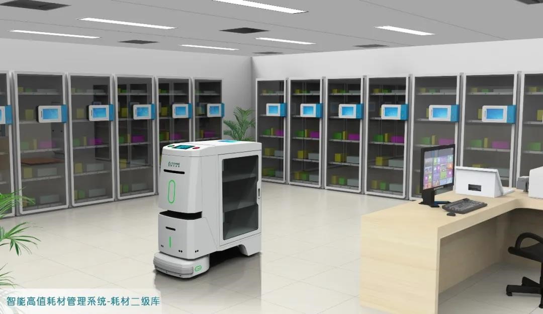 智能物资管理系统是由物流机器人及院内物资管理平台等组成,是瑞华全院物联网智慧建设整体解决方案中不可或缺的一环, 可以承担医疗环境下的药品、耗材、洁净物资等院内常用物资的管理、运输任务。使用过程中任务远程下单、路线自动规划、权限式取用管理等。 最大限度精准、安全、高效的保障各科室间的物资输送。并且将医护人员从繁杂的物资取用运输任务中解放出来,不但减少了医护人员往返各科室间造成的加大接触及感染风险, 避免病毒接触式的传播。更保障物资及时安全的送抵目的地,避免人为操作的错误及误差。