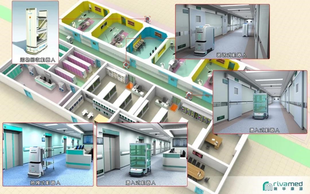 瑞华康源物资管理系统可覆盖院内多种任务场景,如手术室、病区、物资库房等,其包含管控物资机器人、潜入式机器人、拖拽式机器人、污物回收机器人等, 疫情当下瑞华更是推出了消毒机器人,可以承担感染科、病区等医疗环境中的消毒任务,自动、高效、安全的为抗击疫情助力!